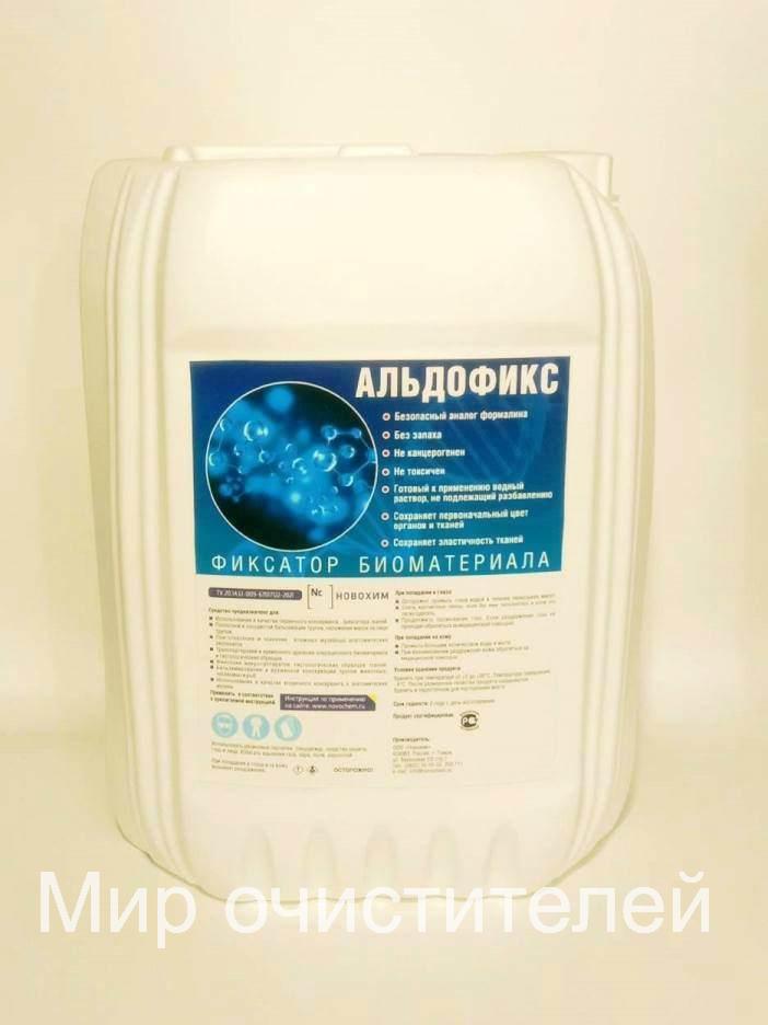 Альдофикс не имеет запаха, относится к четвертому (низкому) классу опасности и нетоксичен для человека. Как и формалин, он может применяться для фиксации музейных экспонатов, транспортировки биоматериалов, приготовления препаратов для студентов-медиков. При его утилизации не нужно предпринимать специальных мер.