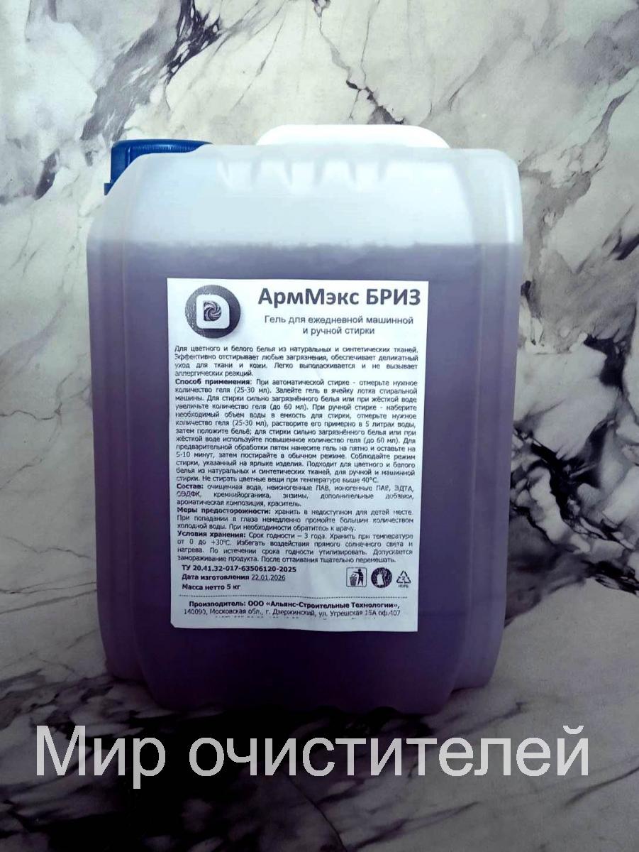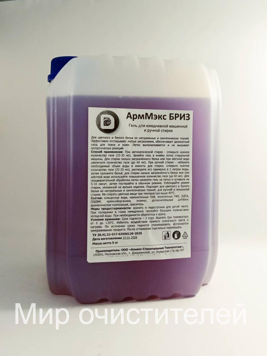 Гель для стирки спецодежды АрмМэкс Бриз - универсальное моющее средство широкого спектра действия. Отстирывает и удаляет пищевые. сложные загрязнения, в том числе нефтемасляные и жирове пятна и другие индустриальные загрязнения.