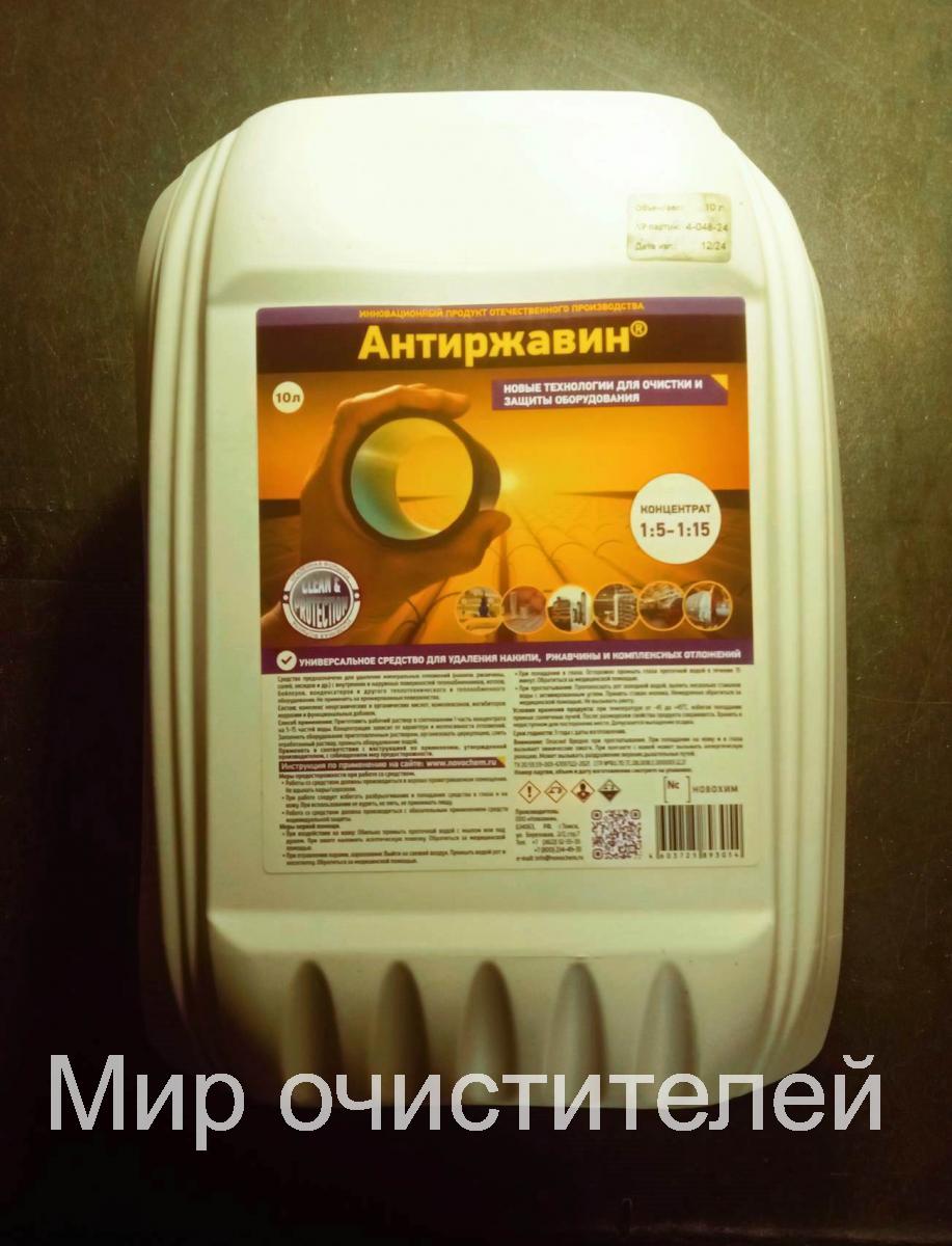 Антиржавин для быстрого удаления сложносоставных неорганических отложений, накипи, ржавчины и других отложений с внутренних и наружных поверхностей труб, теплообменников, котлов, бойлеров, конденсаторов, систем отопления, радиаторов тепловозов, турбин, насосного оборудования и другого теплотехнического оборудования.