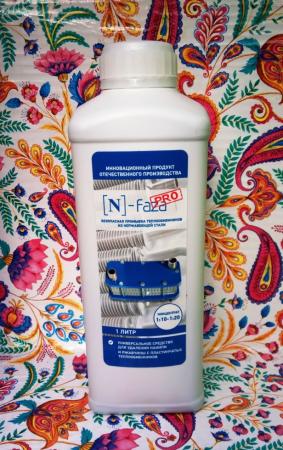N-faza не содержит соляной кислоты и ионов хлора. Очищает мягко, не оставляя шлама. Концентрат разбавляют с водой 1/20 воды. При очистке не воздействует на прокладочный материал, т.к. N-faza содержит ряд новых инновационных компонентов. Поставляется в пластиковой таре 5 л., 10 л., 20 л.