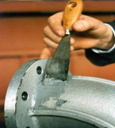 Способ применения холодная сварка для сантехники: Зачистить участки, которые требуется соединить, необходимо очистить от грязи и ржавчины, лучше сделать крупнозернистой наждачной бумагой (для металлов), по возможности обезжирить (ацетоном, и т. п.) и просушить. Отрезать не менее 1/3 от объема стержня и тщательно смешать оба компонента пальцами рук (можно влажными) до получения равномерной окраски массы.Нанести полученную смесь на ремонтируемую поверхность. При склеивании деталей нанести пластилин на обе соединяемые поверхности и, прижать и зафиксировать на 10-15 минут. При использовании на влажных или замасленных поверхностях смесь необходимо приглаживать возвратно-поступательными движениями до ощущения прилипания её к поверхности (при этом прочность соединения снижается на 20-25% для замасленных поверхностей). В случае необходимости ремонта при низких температурах рекомендуется после выполнения пп.1 и 2 скатать из полученной массы шарик и держать его в руках, пока он сам не разогреется до +40-50°С (но не более 4 минут с начала размешивания), и лишь после этого нанести на ремонтируемый участок. При этом рекомендуется использовать на менее 1/3 от общей массы. Для разглаживания ремонтируемой поверхности и придания ей необходимой формы используйте плоские предметы, смоченные водой.