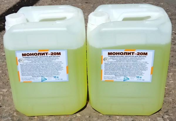 Монолит 20М армирует стенки микропор и «сшивает» микротрещины. Бетон обработанный пропиткой «Монолит-20М» показывает увеличение ударной прочности на 20-40 процентов. Пропиткой Монолит-20 М обрабатывают свежеуложенный бетонный пол, так и бетонная поверхность со сроком укладки более двух недель. Монолит 20М благодаря своей высокой проникающей способности и особенностям химического состава делает поверхность пропитанного бетона прочной и плотной, что во много раз повышает его эксплуатационные качества. На поверхности плиты формируется упрочненный слой (слой износа) хорошо воспринимающий нагрузки транспортной среды.