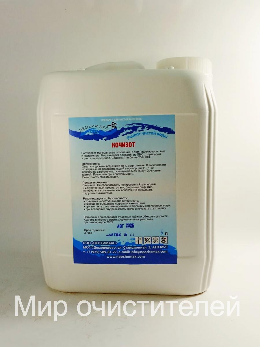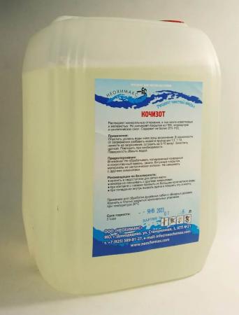 Состав средства Кочизот: хлористый водород 22%, ЧАС, вода активированная.